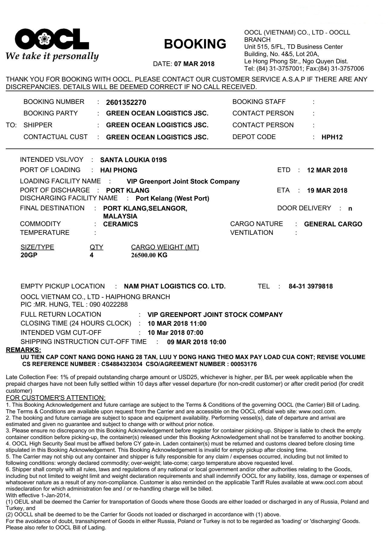 Sau khi xác nhận đặt chỗ, hãng tàu sẽ gửi “Booking Confirmation”. Đây là tài liệu quan trọng thể hiện:
